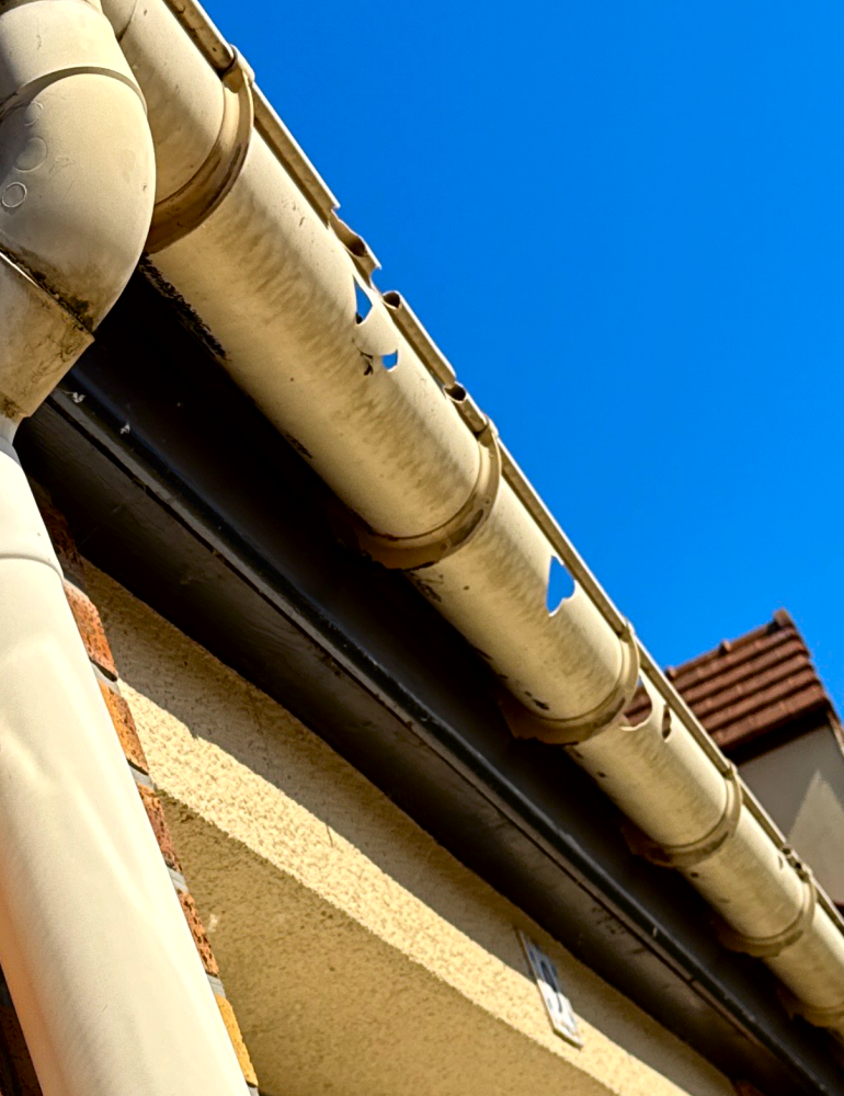 💧 Gouttières cassées ou arrachéesRemise en place et réparation de l'écoulement.