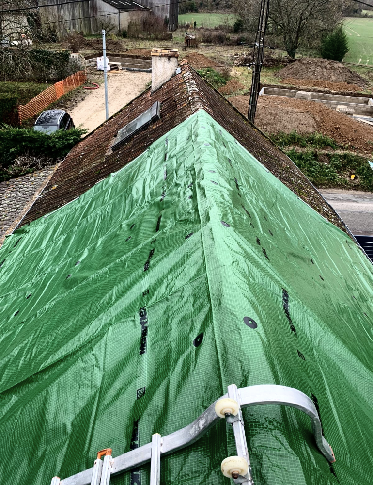 🛡️ Pose de bâche d'urgenceArrêt immédiat des infiltrations.
